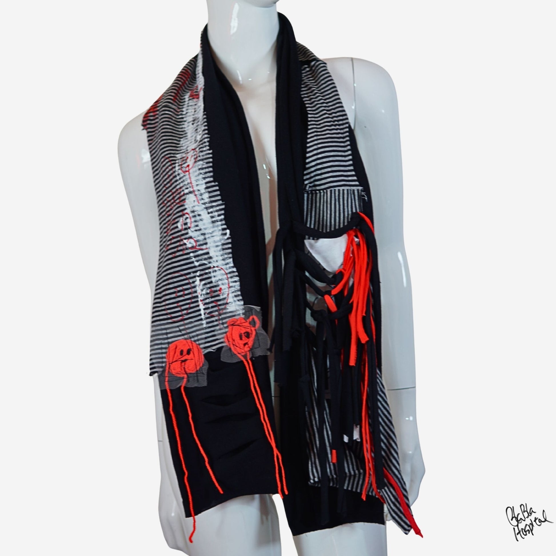 Face No.004 | Fabric Art Greyx Black border Design – Black Scarf